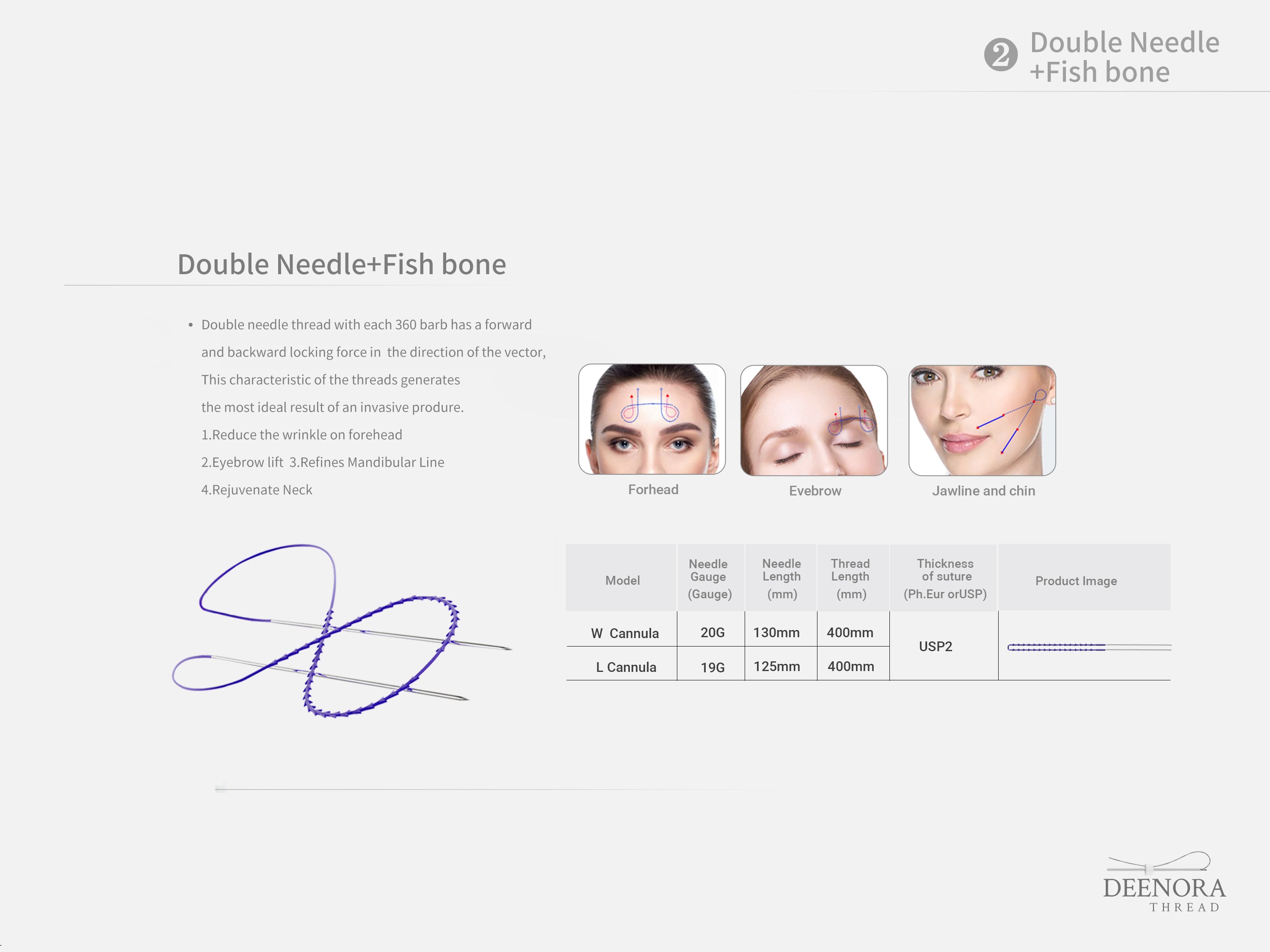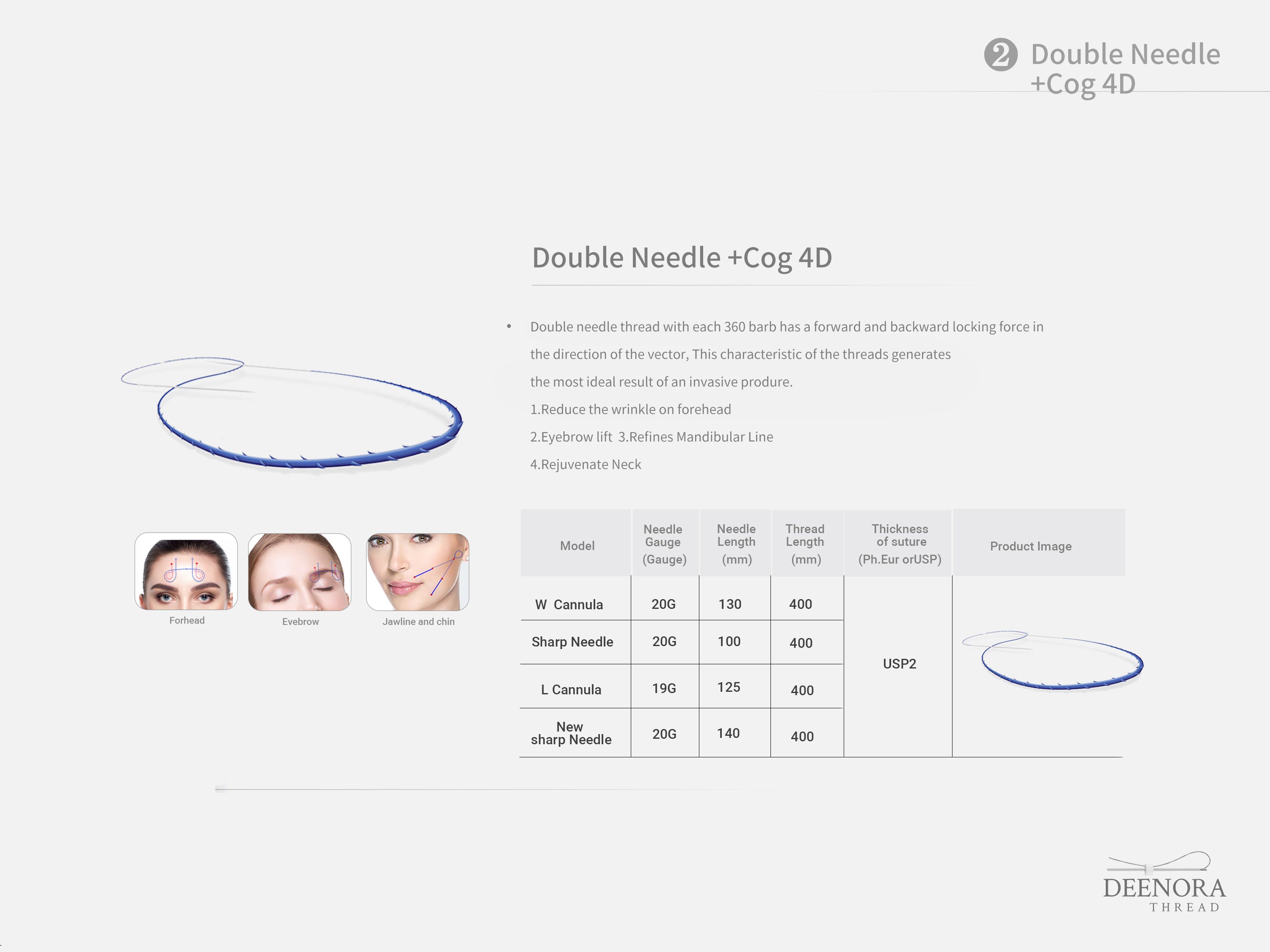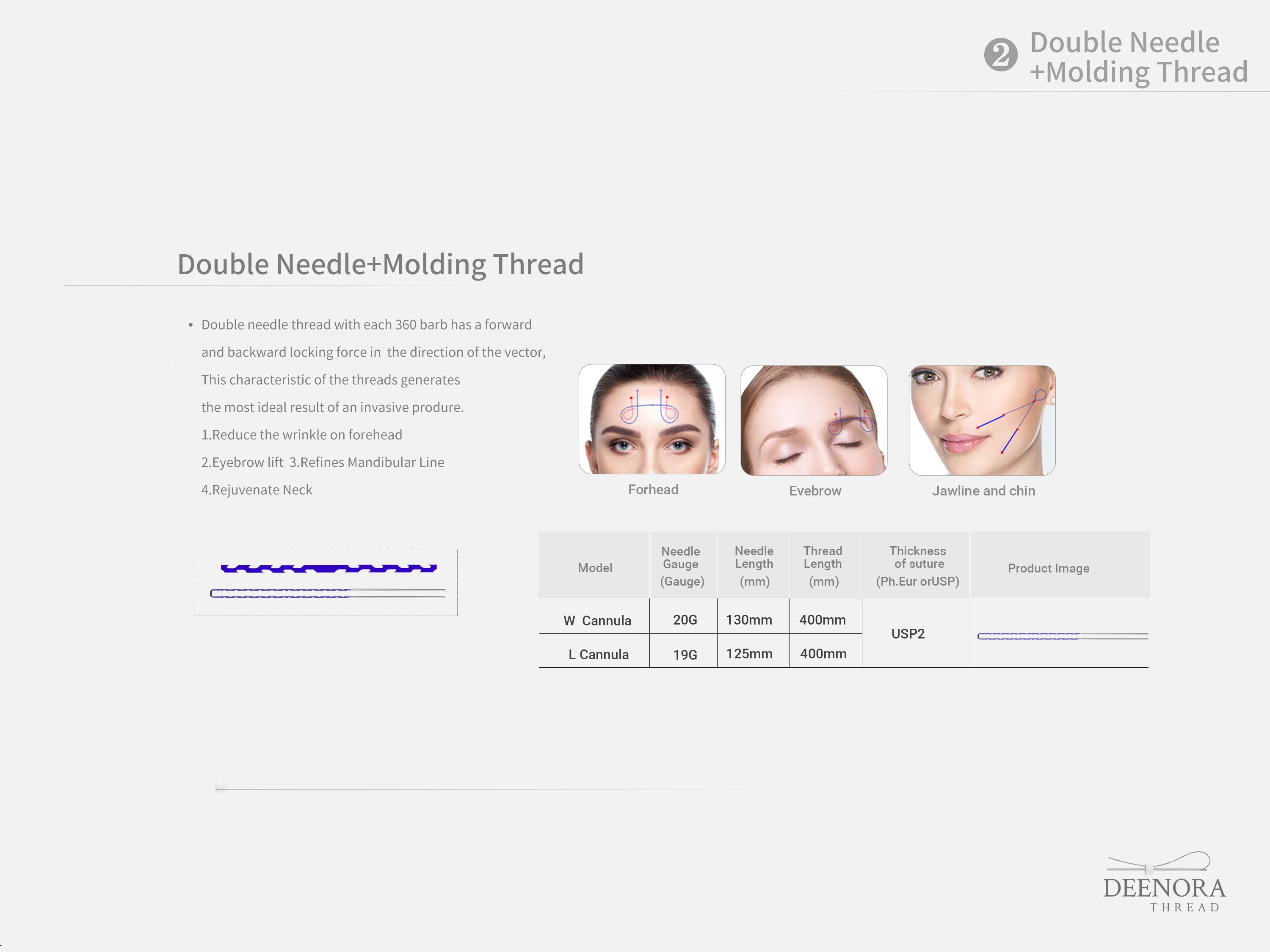 Deenora Thread is a kind of absorbable collagen line PDO (Polydioxanone),PLLA (Poly-L-Lactic Acid),PCL (Polycaprolactone) implanted in specificparts of the skin,stimulate collagen regeneration, promote blood circulation, so as to lift and tighten the drooping shin, achieve natural wrinkle elimination, facial enhancement effect.